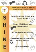 Our core Christian Values link to our SHINE principles, which were created in consultation with children, staff and governors and form a key part of our school ethos, behaviour policy and shared beliefs around staff and parental conduct too.